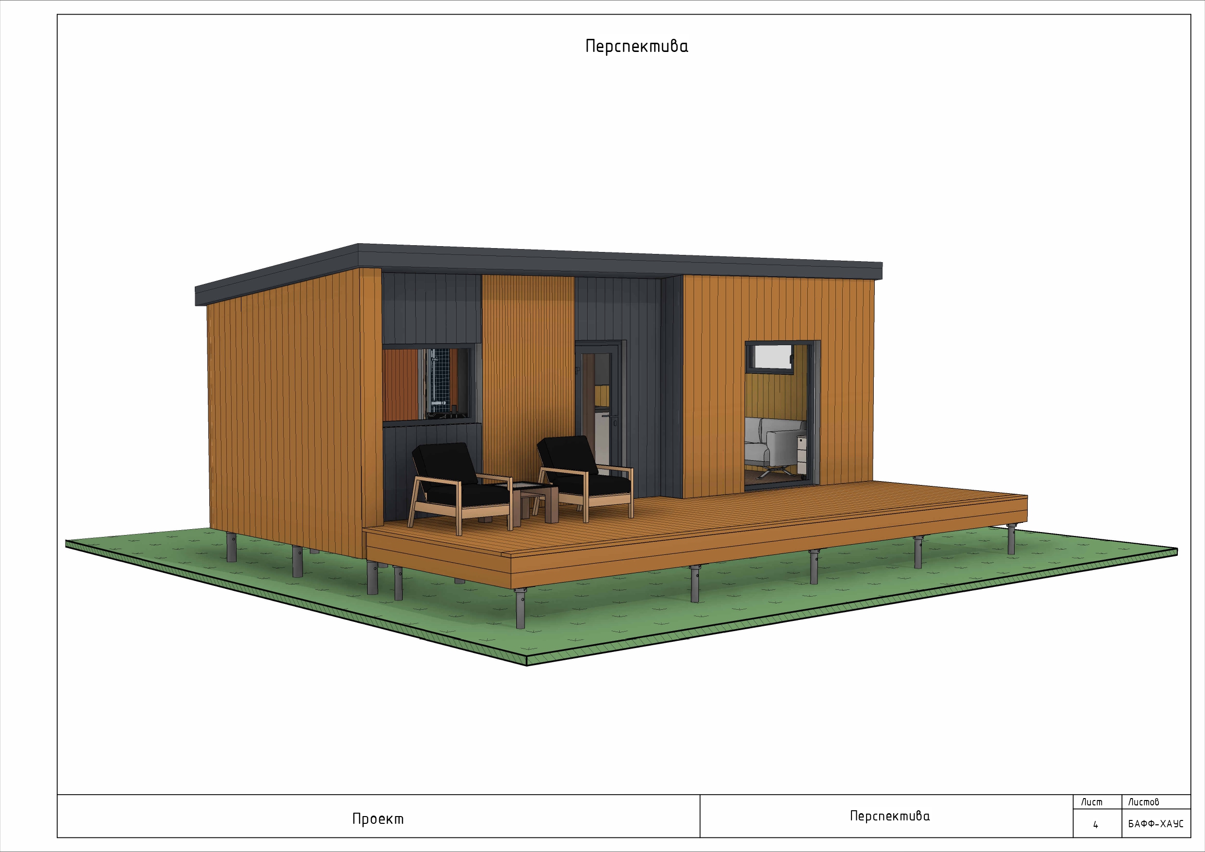 деревянная отделка, строгая геометрия, односкатная крыша и открытая терраса с мебелью. Такой подход популярен в сегменте каркасные дома в ревит, где важны скорость строительства и энергоэффективность.