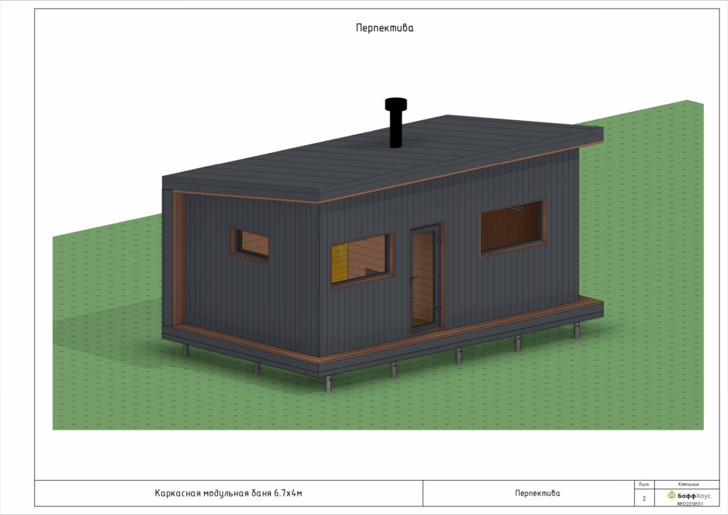 Перед нами компактный, функциональный проект каркасной бани, разработанный в Revit. Несмотря на небольшие размеры, в нем грамотно организовано пространство: