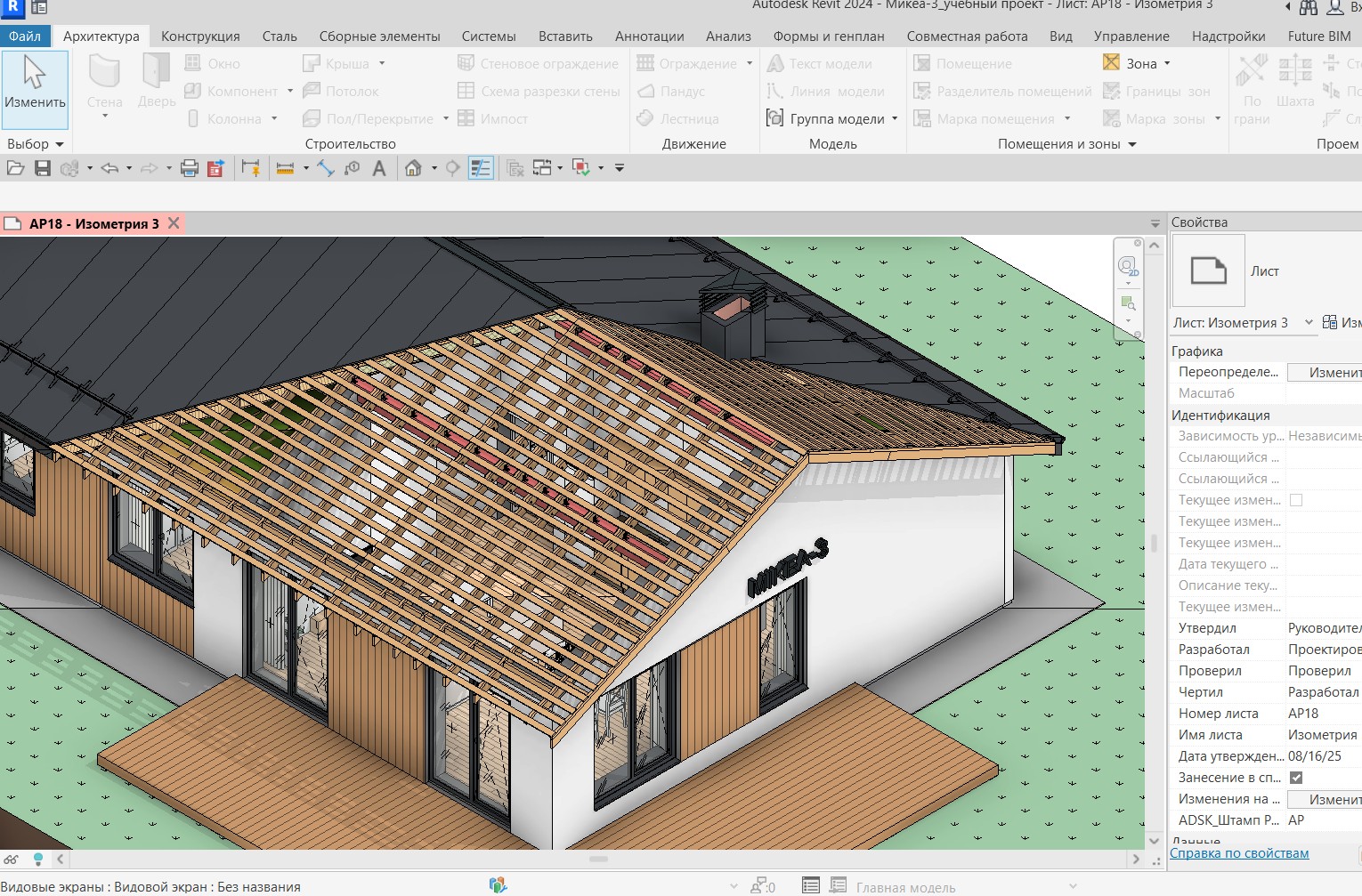 Проект дома в Revit — это информационная модель здания (BIM), где: